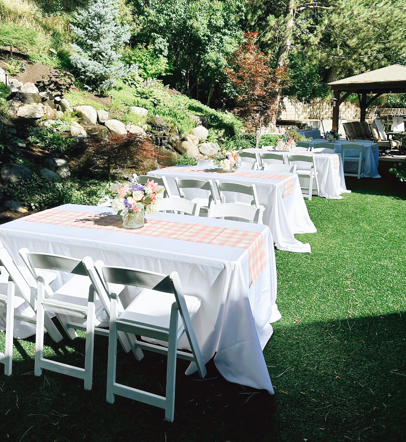 I’ve used this rental company twice for baby showers and it was so easy to pick it up and drop it off at their house. Quality chairs, tables and linens.